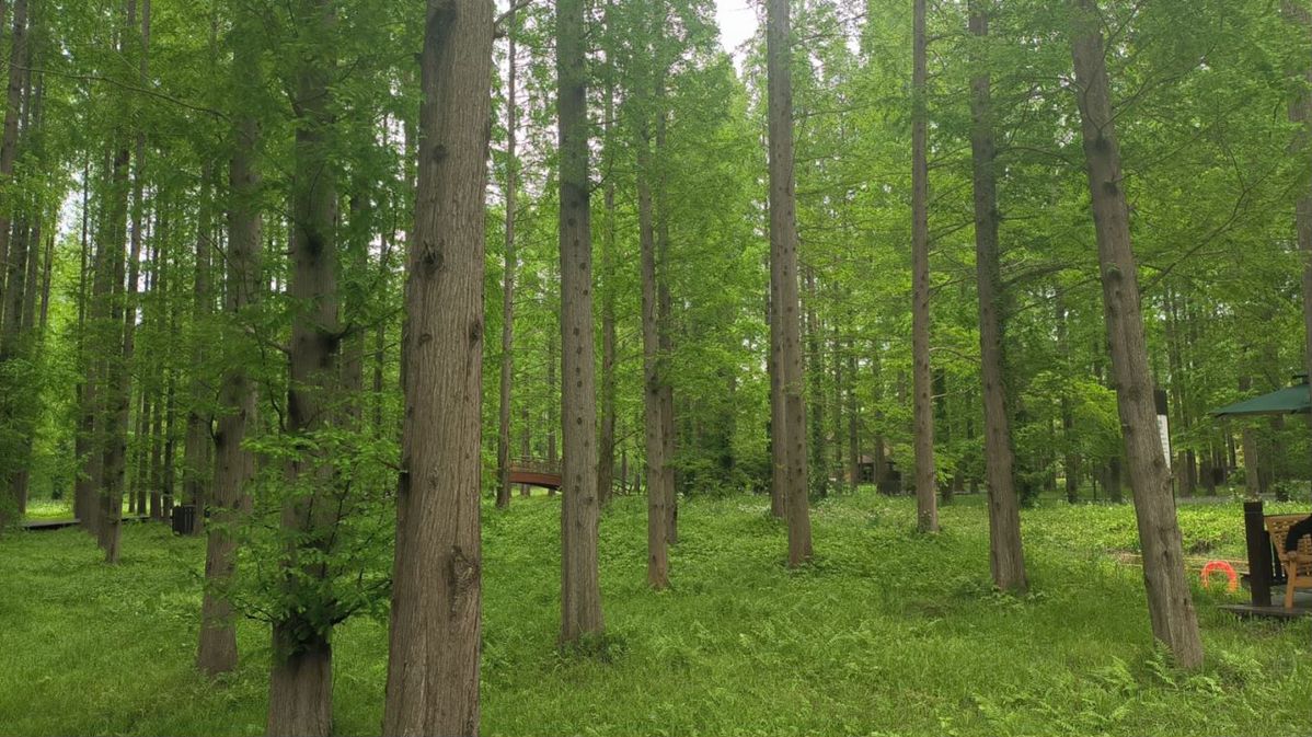 This photo shows vast man-made forest at the Yellow Sea Forest Park in Dongtai city, Yancheng city, East China's Jiangsu province, April 25, 2023. [Photo/chinadaily.com.cn]