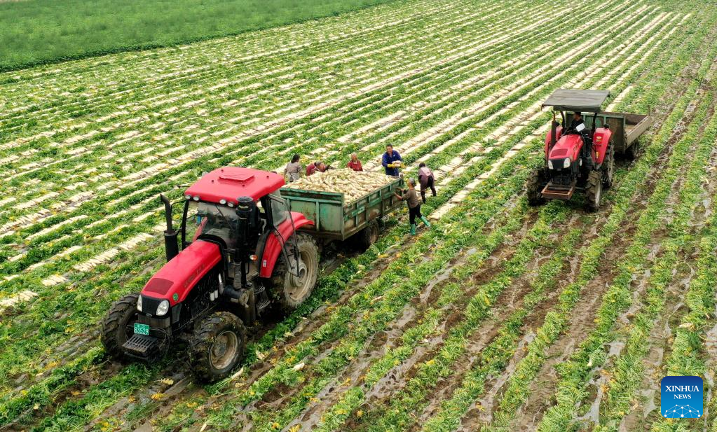 - Farmers busy with harvesting lotus roots in Lingjiaohu Village, Hunan
