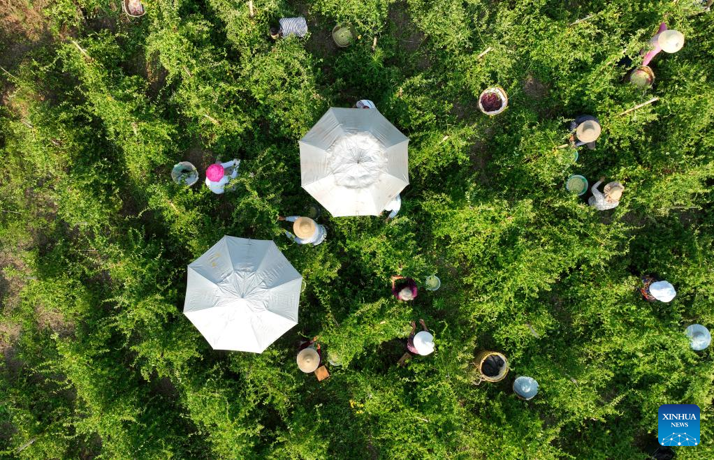 Farmers pick roses in Shangqiang Village, Huzhou City of east China's Zhejiang Province, May 6, 2023. Chinese farmers are busy with field works during "Lixia", the seventh solar term on the Chinese lunar calendar that marks the beginning of summer. (Photo by He Weiwei/Xinhua)
