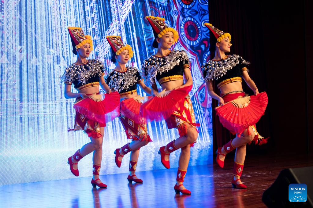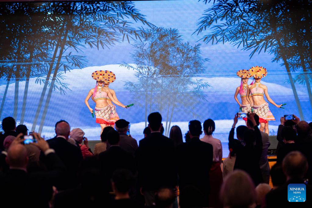 Artists perform a folk dance of Dai ethnic group at the Chinese Embassy in the United States in Washington, D.C., the United States, on May 6, 2023. The Chinese Embassy in the United States joined the Around the World Embassy Tour of Washington D.C. and held an open house event themed "Yunan: A Many-Splendored Life" presenting the southwestern Chinese province on Saturday. (Xinhua/Liu Jie)