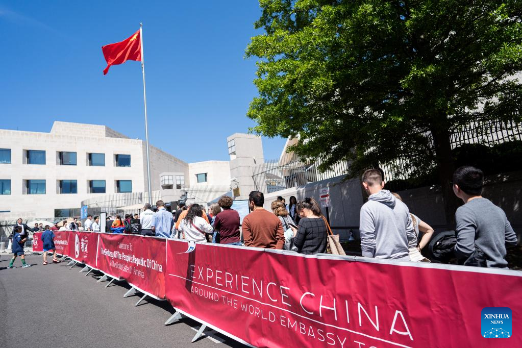 Visitors queue up outside the Chinese Embassy in the United States in Washington, D.C., the United States, on May 6, 2023. The Chinese Embassy in the United States joined the Around the World Embassy Tour of Washington D.C. and held an open house event themed "Yunan: A Many-Splendored Life" presenting the southwestern Chinese province on Saturday. (Xinhua/Liu Jie)