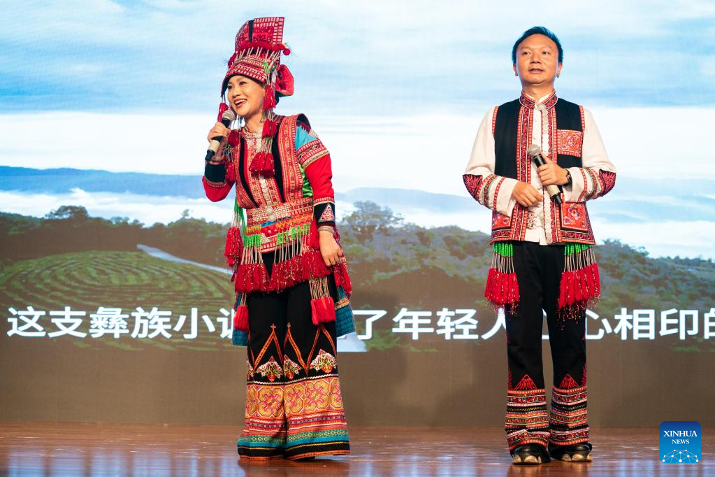 Artists perform a folk song of Yi ethnic group at the Chinese Embassy in the United States in Washington, D.C., the United States, on May 6, 2023. The Chinese Embassy in the United States joined the Around the World Embassy Tour of Washington D.C. and held an open house event themed "Yunan: A Many-Splendored Life" presenting the southwestern Chinese province on Saturday. (Xinhua/Liu Jie)