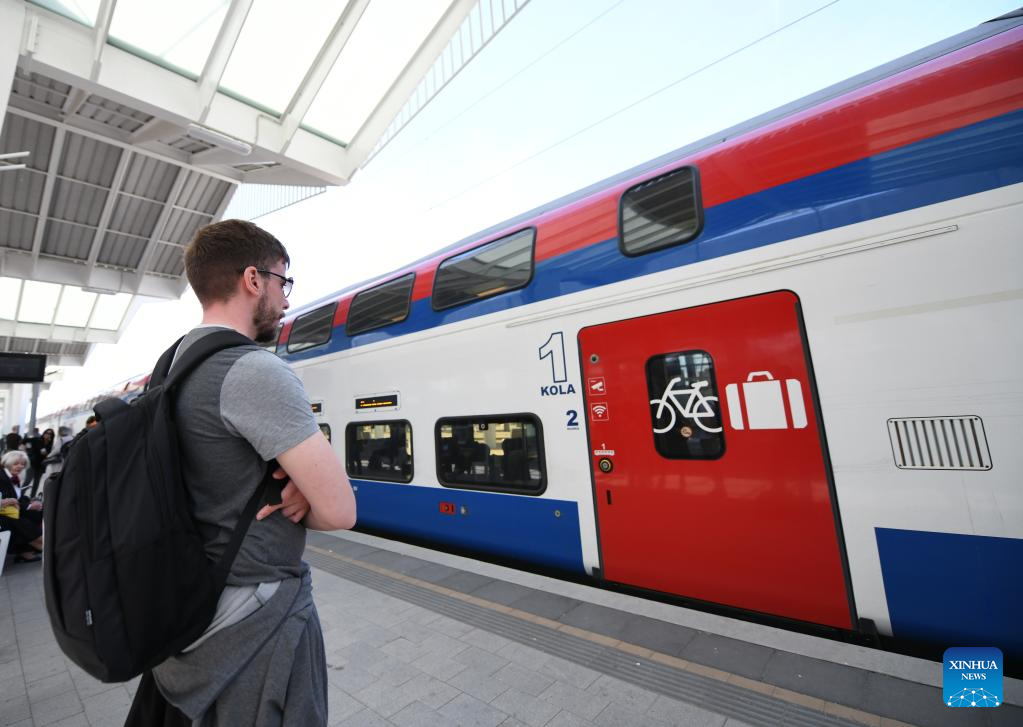 Passengers wait at Novi Sad station in Serbia, May 6, 2023. The 80-kilometer-long, Chinese-built Belgrade-Novi Sad high-speed railway has been carrying passengers at speeds of up to 200 kilometers per hour since March 2022. (Xinhua/Ren Pengfei)
