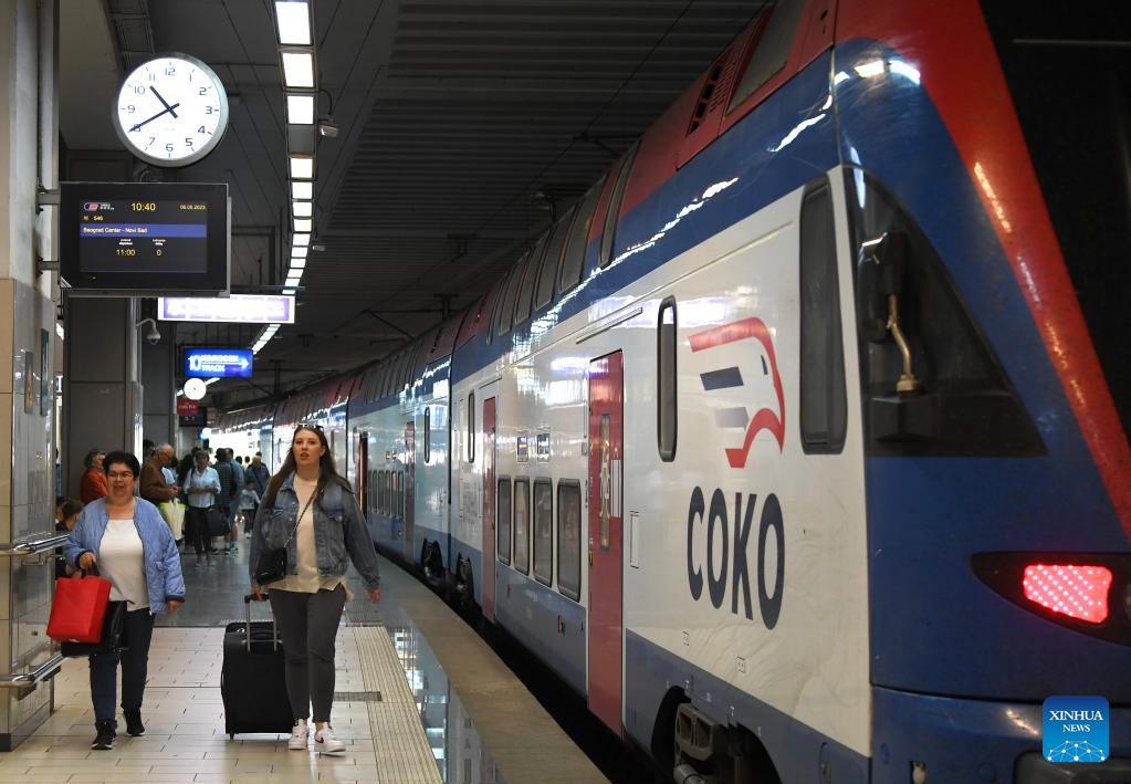 Passengers board a train to Belgrade at Novi Sad station in Serbia, May 6, 2023. The 80-kilometer-long, Chinese-built Belgrade-Novi Sad high-speed railway has been carrying passengers at speeds of up to 200 kilometers per hour since March 2022. (Xinhua/Ren Pengfei)