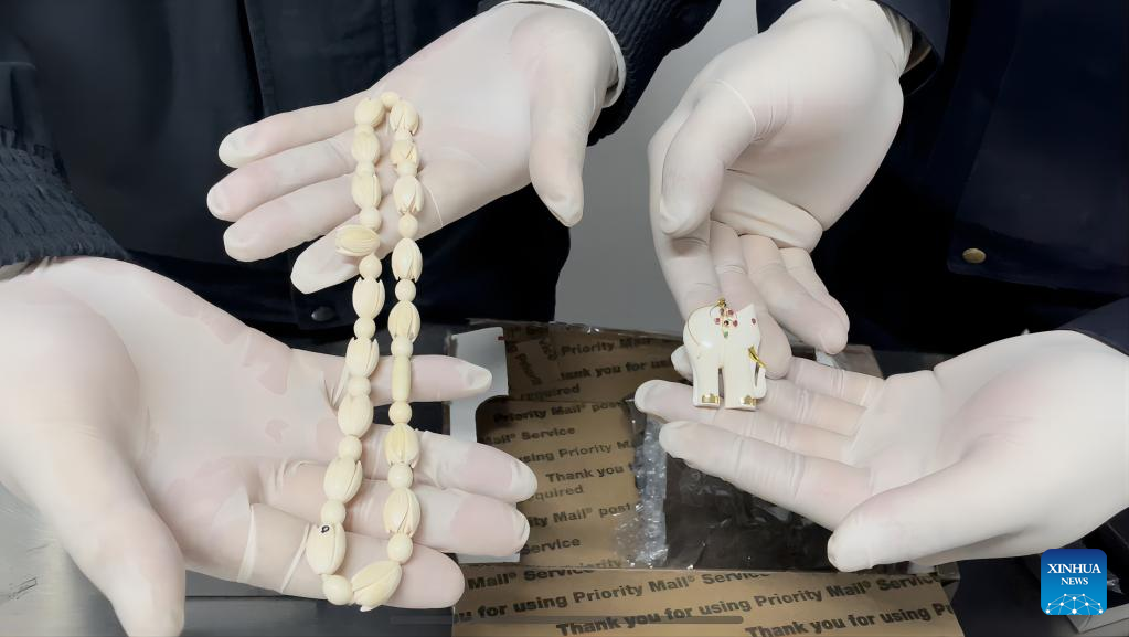 CHANGSHA, May 8 (Xinhua) -- Customs officials have seized two ivory items weighing about 35 grams in total from an imported package in Changsha, the capital of central China's Hunan Province.