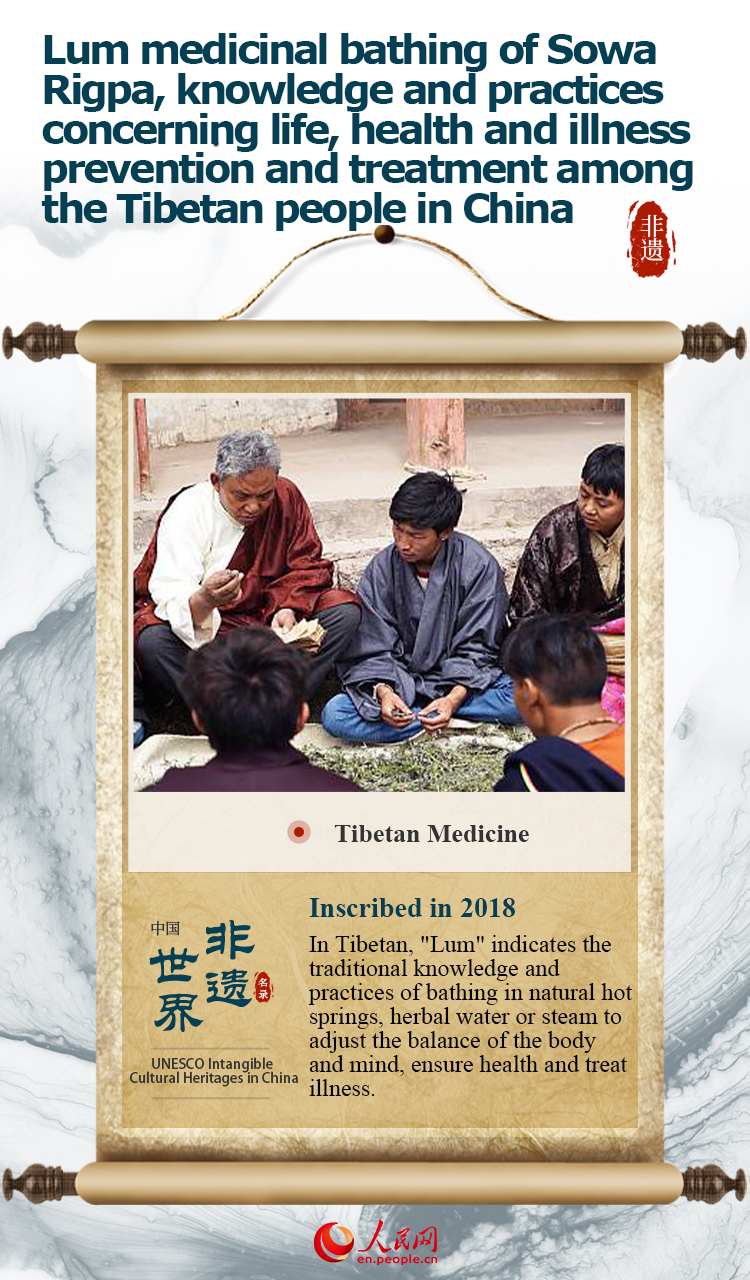 The term, "Lum medicinal bathing of Sowa Rigpa, knowledge and practices concerning life, health and illness prevention and treatment among the Tibetan people in China" was inscribed on UNESCO's Representative List of the Intangible Cultural Heritage of Humanity in 2018.