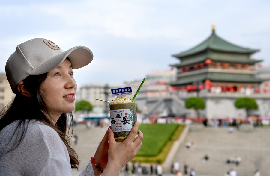Tourists visit the Drum Tower in Xi'an, northwest China's Shaanxi Province, May 1, 2023. (Xinhua/Liu Xiao)