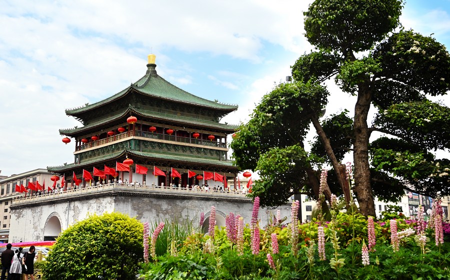 Tourists visit the Bell Tower in Xi'an, northwest China's Shaanxi Province, May 1, 2023. (Xinhua/Liu Xiao)