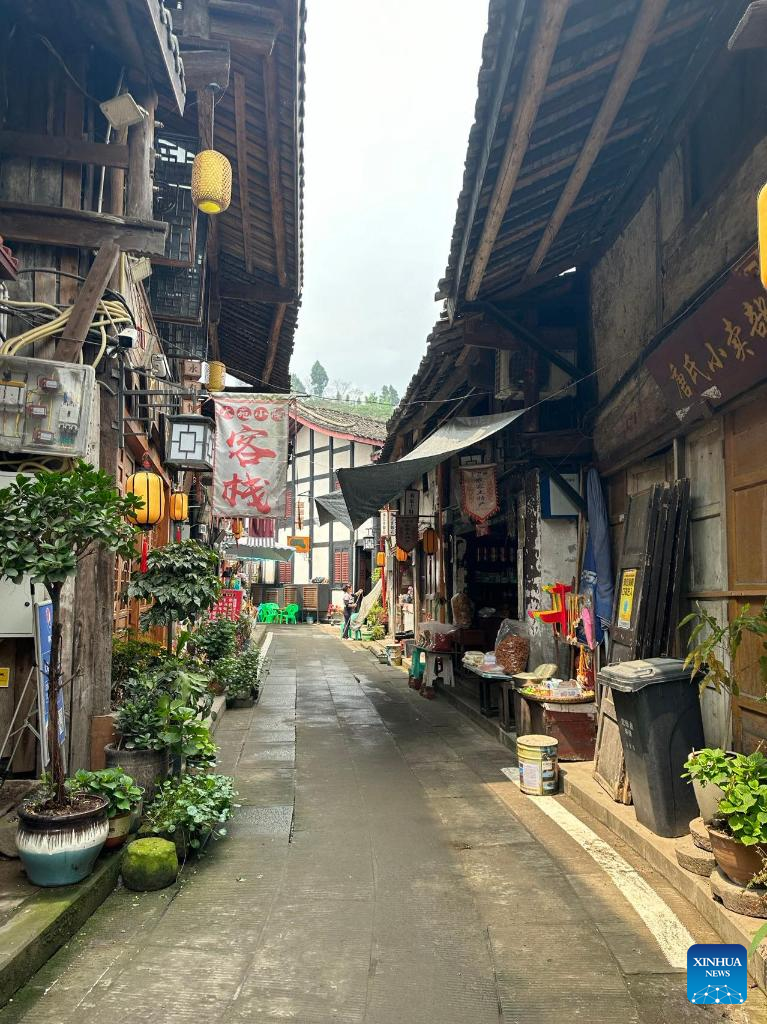 This photo taken on April 12, 2023 shows a street in Pianyan ancient town, Beibei District, southwest China's Chongqing Municipality. (Xinhua/Chen Qingbing)