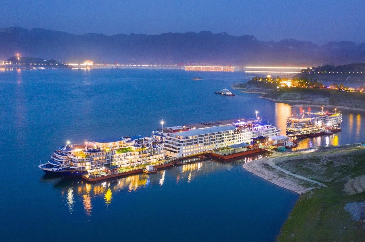 Photo taken on April 30, 2023 shows cruise ships in Yichang, central China's Hubei province. (People's Daily Online/Zheng Kun)