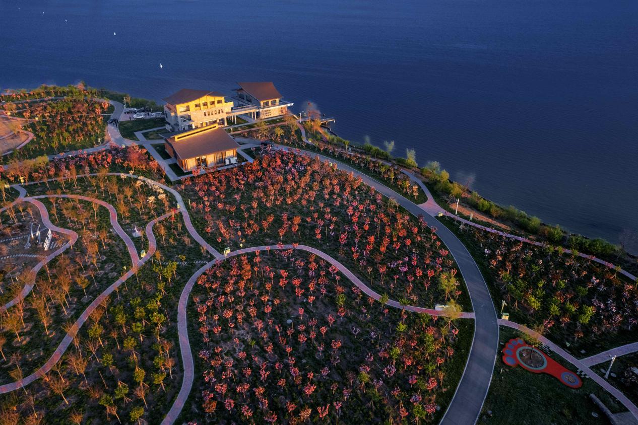 Photo shows blooming flowers on an island in Hengshui Lake, Hengshui city, north China's Hebei Province. (Photo/People’s Daily Online)
