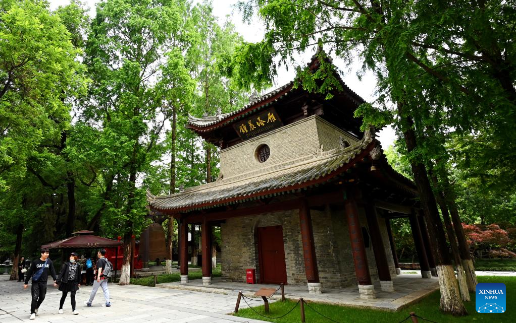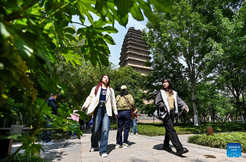 Tourists visit the Xi'an Museum located in the Small Wild Goose Pagoda scenic area in Xi'an, northwest China's Shaanxi Province, May 8, 2023. (Xinhua/Liu Xiao)