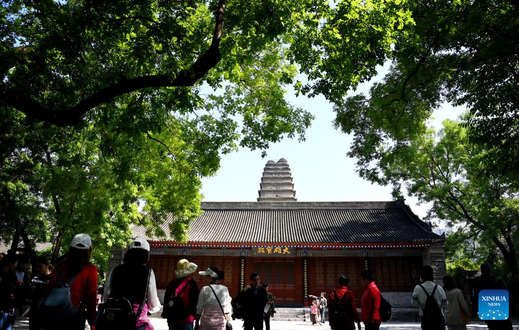 Tourists visit the Jianfu Temple in Xi'an, northwest China's Shaanxi Province, May 8, 2023. (Xinhua/Liu Xiao)