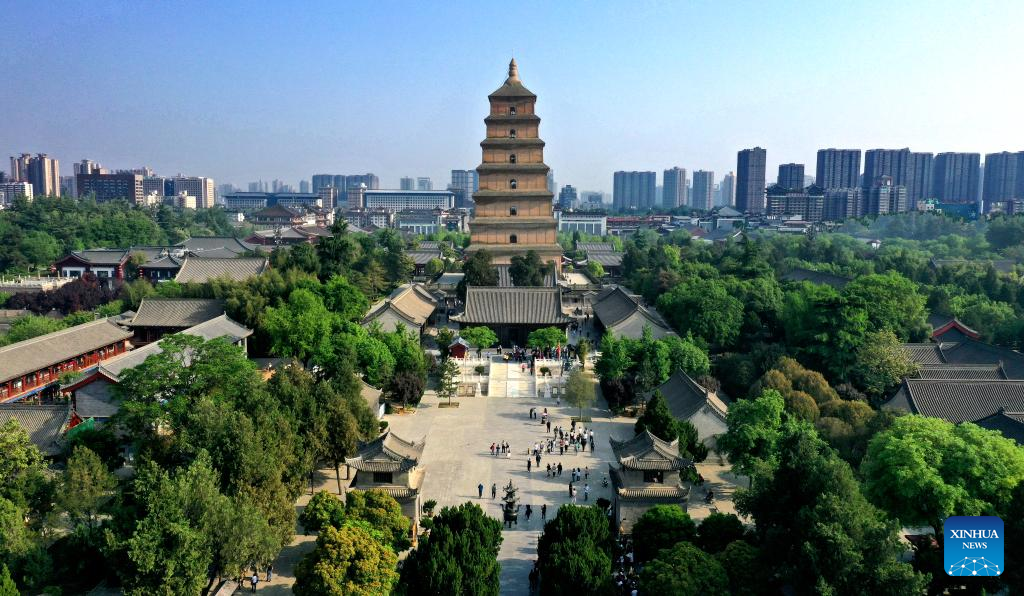 This photo taken on May 1, 2023 shows a view of the Giant Wild Goose Pagoda in Xi'an, northwest China's Shaanxi Province. (Photo by Zou Jingyi/Xinhua)