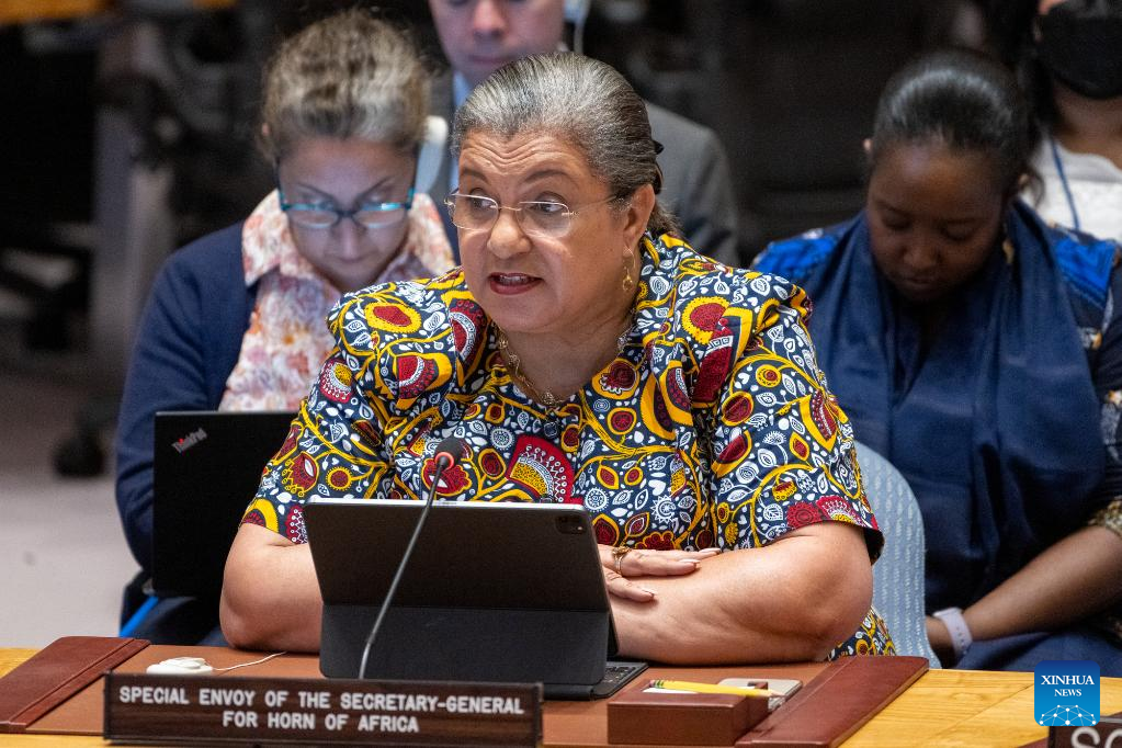 Hanna Serwaa Tetteh, special envoy of the UN secretary-general for the Horn of Africa, briefs a Security Council meeting at the UN headquarters in New York, on May 9, 2023. (Eskinder Debebe/UN Photo/Handout via Xinhua)