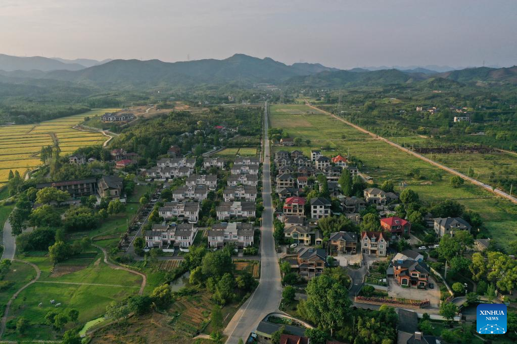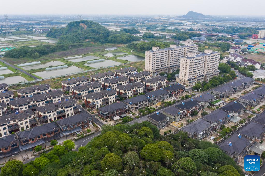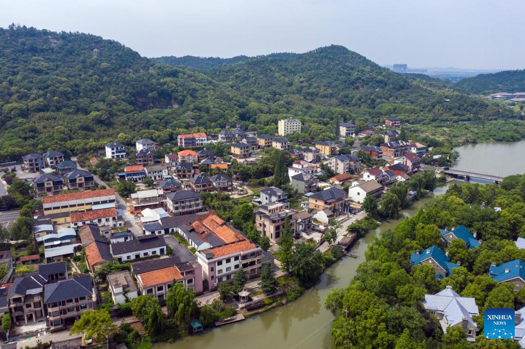 This aerial photo taken on May 9, 2023 shows the view of Longsheng Village of Deqing County, east China's Zhejiang Province. Deqing has been adhering to green development in recent years, making use of traditional cultural resources and developing leisure projects. (Xinhua/Huang Zongzhi)