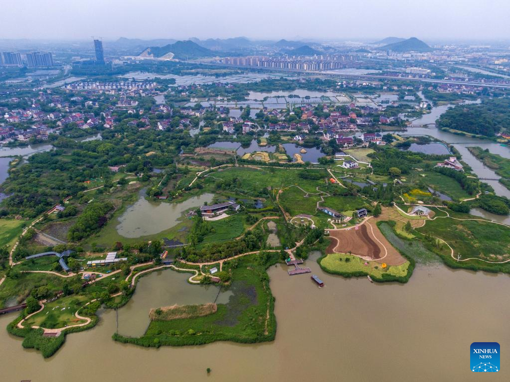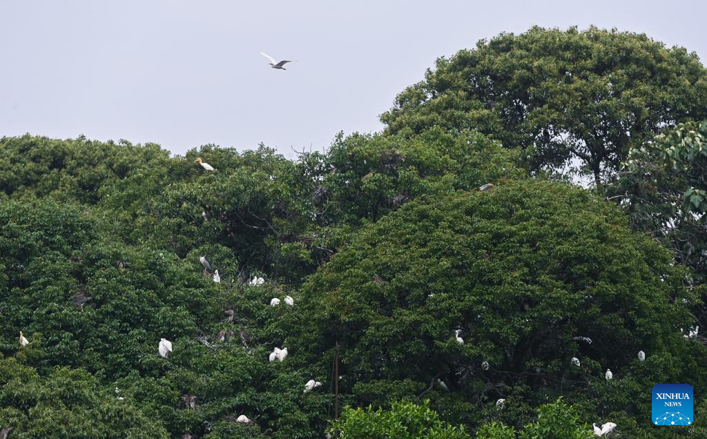 Egrets are seen in Dongheng Village of Deqing County, east China's Zhejiang Province, May 8, 2023. Deqing has been adhering to green development in recent years, making use of traditional cultural resources and developing leisure projects. (Xinhua/Xu Yu)