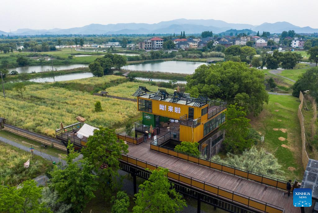 This photo taken on May 8, 2023 shows an art gallery in Xiantan Village of Deqing County, east China's Zhejiang Province. Deqing has been adhering to green development in recent years, making use of traditional cultural resources and developing leisure projects. (Xinhua/Huang Zongzhi)