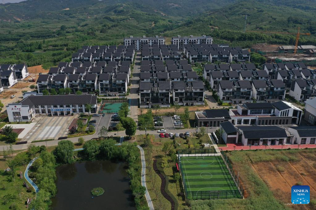 This aerial photo taken on May 8, 2023 shows the view of Dongheng Village of Deqing County, east China's Zhejiang Province. Deqing has been adhering to green development in recent years, making use of traditional cultural resources and developing leisure projects. (Xinhua/Xu Yu)