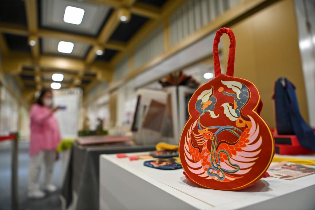 A piece of artwork is on display at an exhibition featuring cultural and creative products at Dananmen Station of Taiyuan Subway Line 2, Taiyuan, capital of north China's Shanxi Province, May 9, 2023. More than 200 pieces of artwork were displayed at the exhibition, showcasing this city's history. The exhibition runs until May 12. (Xinhua/Yang Chenguang)