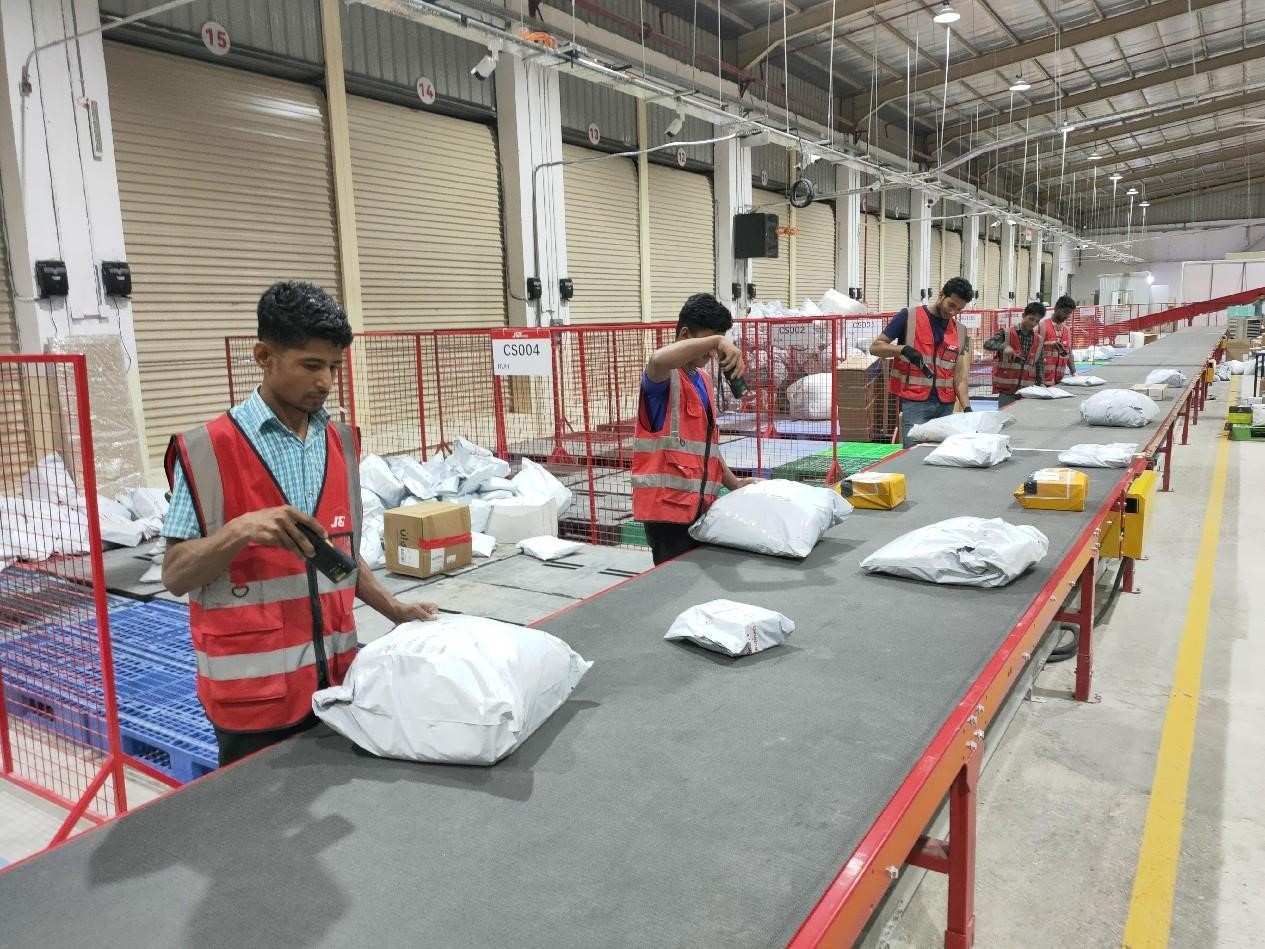 Photo shows a parcel distribution center of J&T Express in Buraidah, capital of Riyadh, Saudi Arabia. (People's Daily/Guan Kejiang)