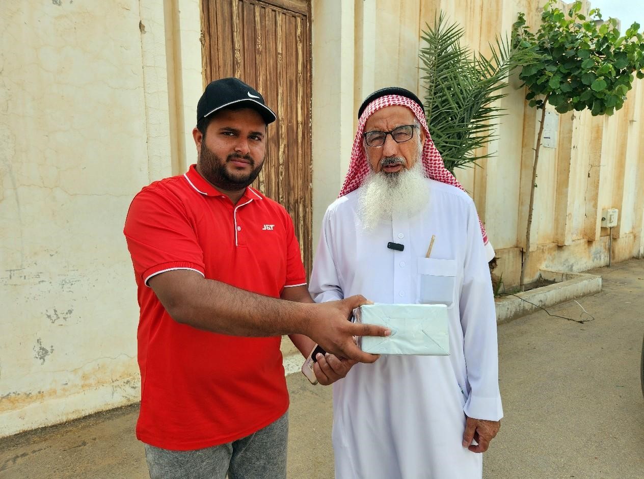Photo shows a courier of J&T Express delivering parcels in Saudi Arabia. (People's Daily/Guan Kejiang)