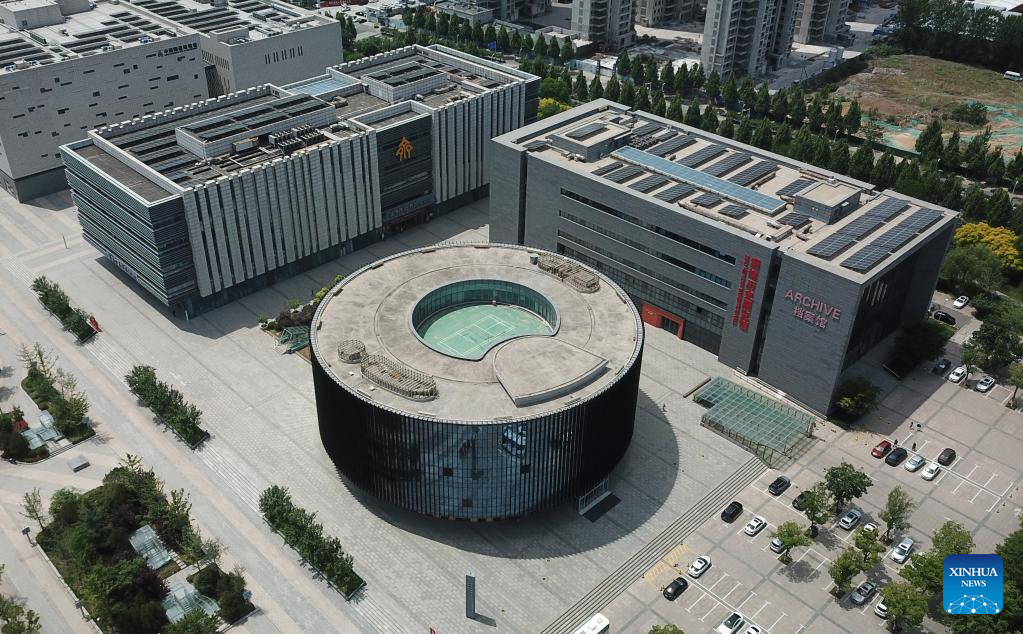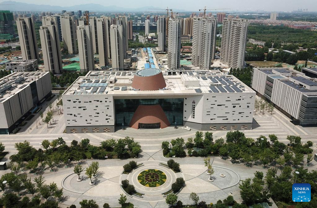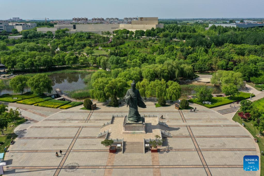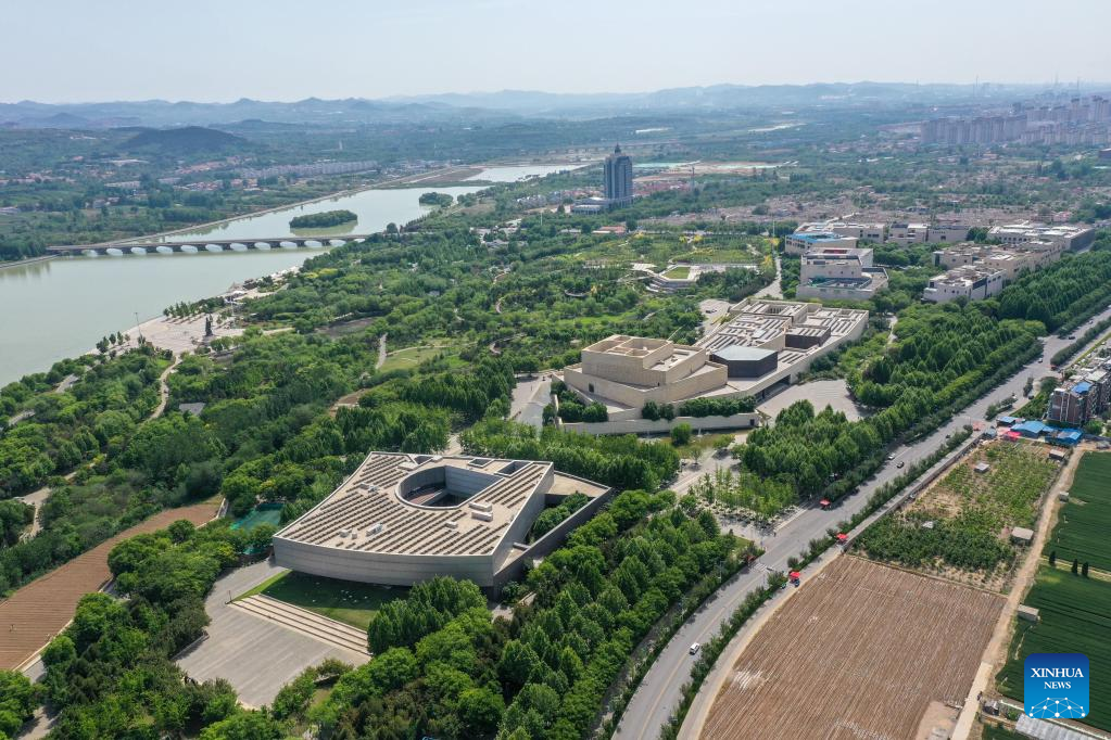 This aerial photo taken on May 8, 2023 shows a view of Qidu cultural center in Linzi District of Zibo, east China's Shandong Province. (Xinhua/Zhu Zheng)