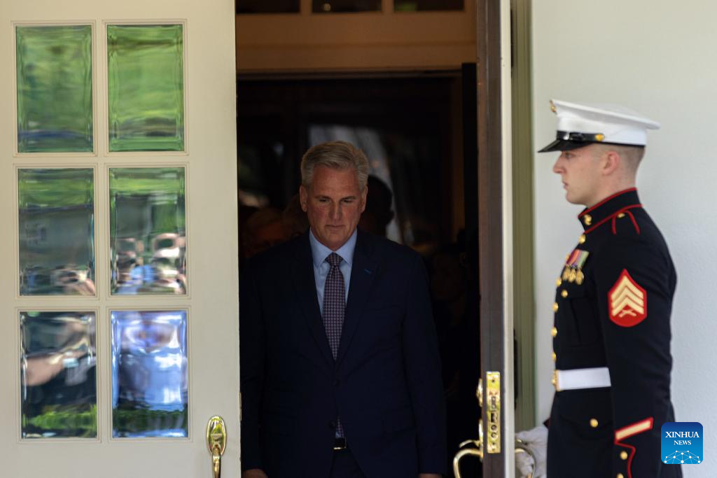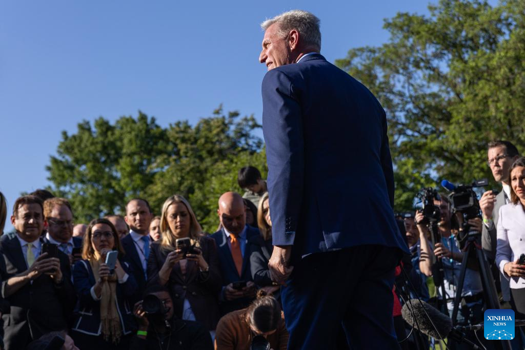Republican House Speaker Kevin McCarthy exits the White House after a high-profile debt ceiling meeting in Washington, D.C., the United States, May 9, 2023. Republicans and Democrats are nowhere near a deal after a high-profile debt ceiling meeting failed to yield a breakthrough on Tuesday, risking a debt default that economists warn could cripple the U.S. economy and spawn a financial crisis. (Photo by Aaron Schwartz/Xinhua)
