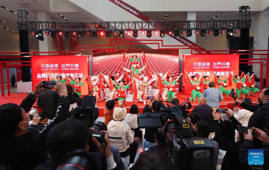 Visitors enjoy a dance performance at the Exposition on China Brand 2023 in east China's Shanghai, May 10, 2023. The Exposition on China Brand 2023 kicked off Wednesday at the Shanghai World Expo Exhibition and Convention Center. Around 1,000 Chinese enterprises participated in the exposition, showcasing the new look of current Chinese brands to the world. (Xinhua/Fang Zhe)