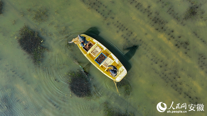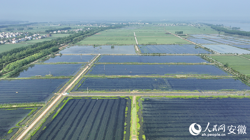 This aerial photo shows a crayfish breeding base in Wuhe county, Bengbu, east China's Anhui Province. (People's Daily Online/Tao Tao)