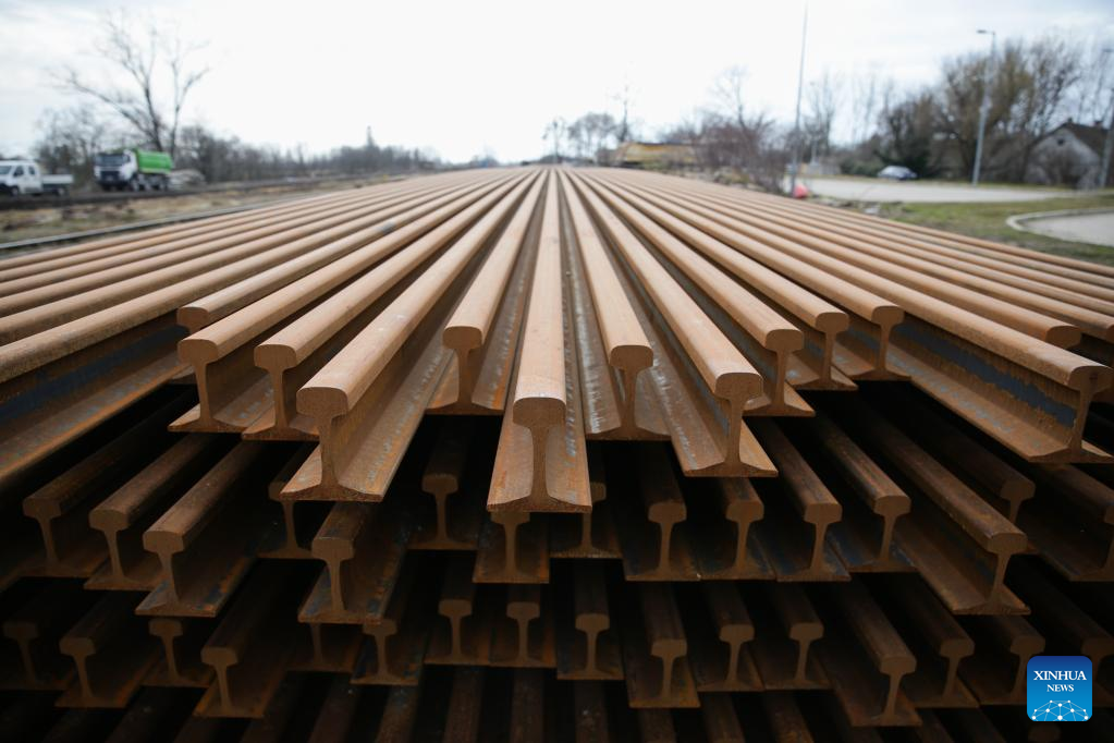 New railway tracks are seen at a construction site of Hungary-Serbia railway project in Kiskunlachaza, Hungary, Feb. 22, 2023. (Xinhua/Zheng Huansong)