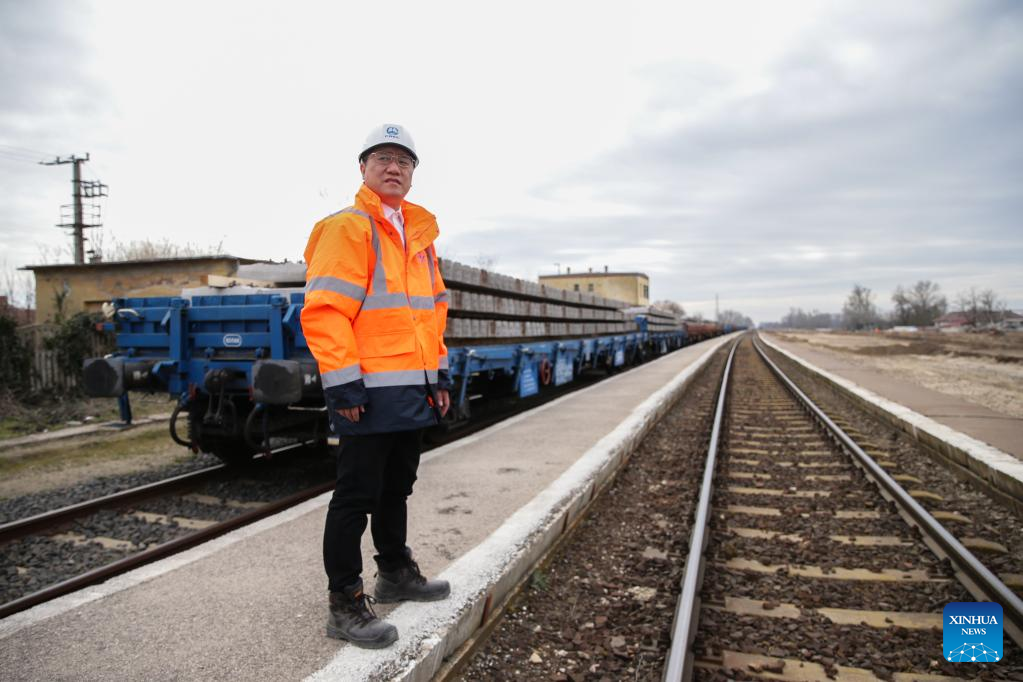 Chen Zhongliang looks on at a construction site of Hungary-Serbia railway project in Delegyhaza, Hungary, Feb. 22, 2023. (Xinhua/Zheng Huansong)