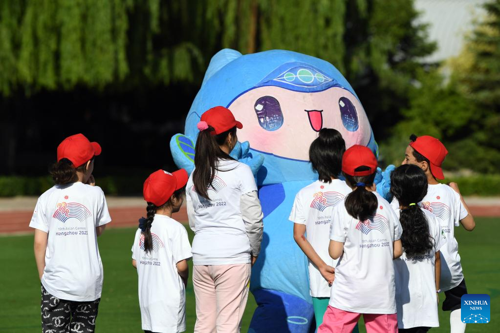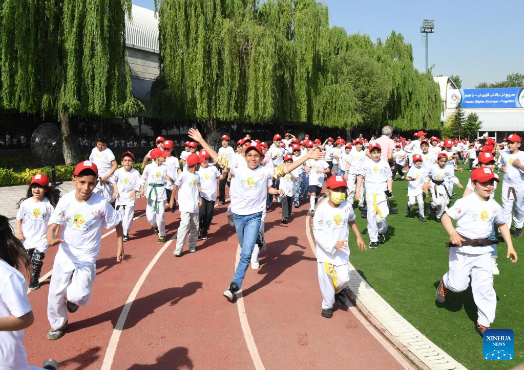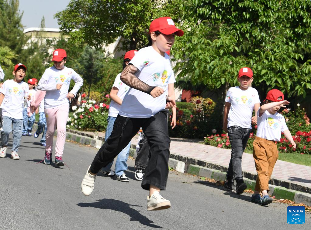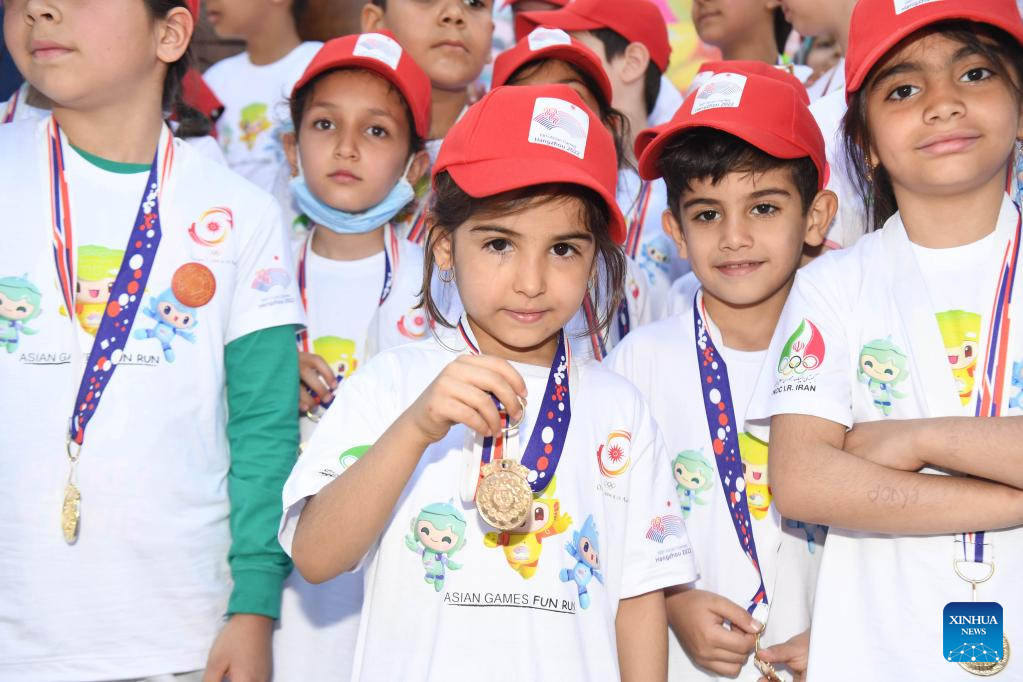 People participate in the Hangzhou Asian Games fun run event at National Olympic Academy of Iran in Tehran, Iran, May 11, 2023. (Xinhua/Shadati)