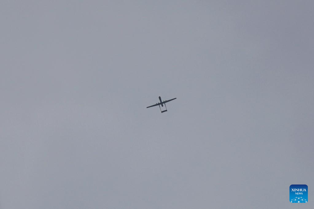 An Israeli army drone is seen in the sky over Gaza City, on May 11, 2023. Israeli fighter jets Thursday continued intensive airstrikes on the Gaza Strip for a third day in a row in response to rockets fired towards Israel, leaving 28 Palestinians killed and 93 injured. (Photo by Rizek Abdeljawad/Xinhua)