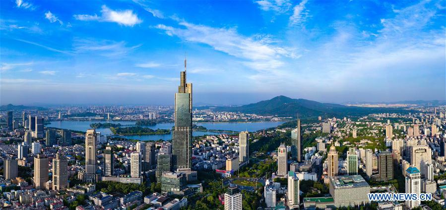 Stitched aerial photo taken on April 18, 2019 shows the view of Nanjing, capital of east China's Jiangsu Province. (Xinhua/Li Xiang)