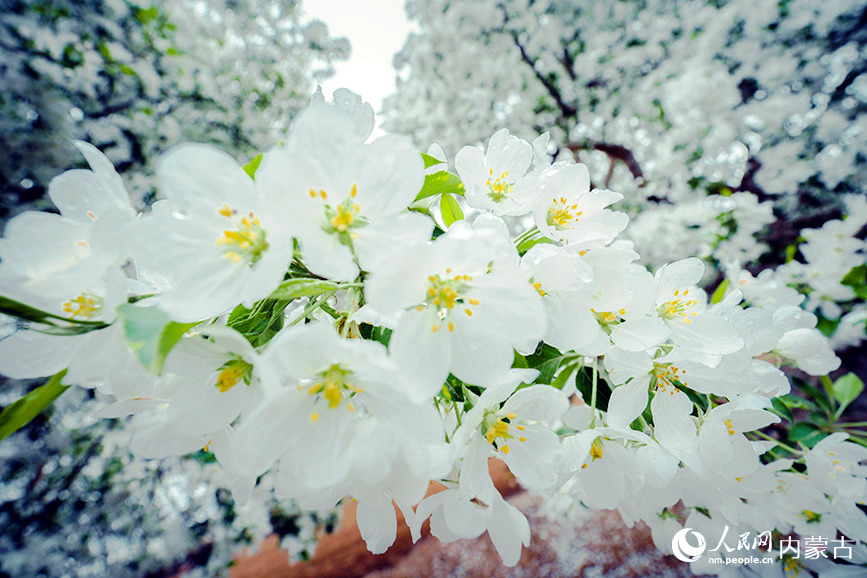 Photo shows crabapple blossoms at the foot of the Yin Mountains in Urad Rear Banner, north China's Inner Mongolia Autonomous Region. (Photo/People's Daily Online)