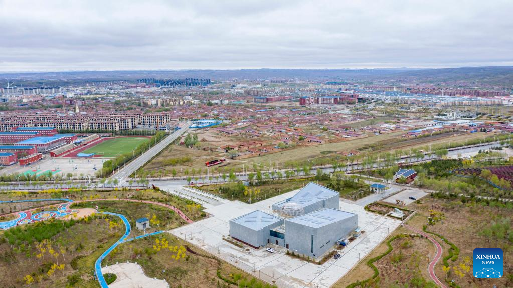 This aerial photo taken on May 9, 2023 shows the scenery of Haiyuan County, Zhongwei City, northwest China's Ningxia Hui Autonomous Region. (Xinhua/Yang Zhisen)