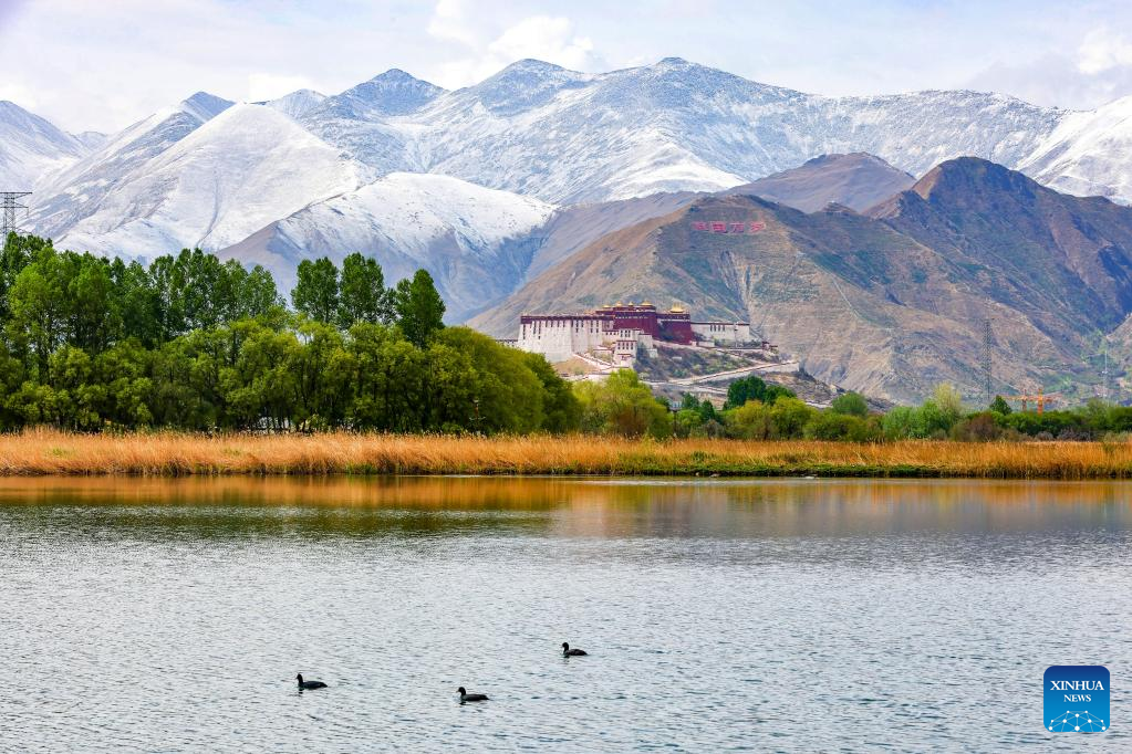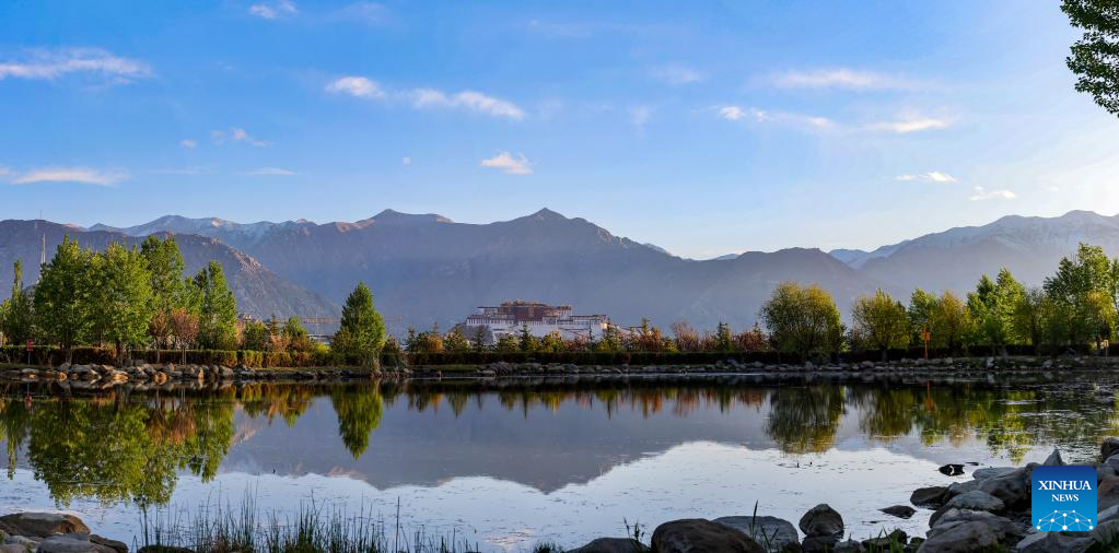 This photo taken on May 13, 2023 shows the Potala Palace seen from the Nanshan Park in Lhasa, capital of southwest China's Tibet Autonomous Region. (Xinhua/Jiang Fan)