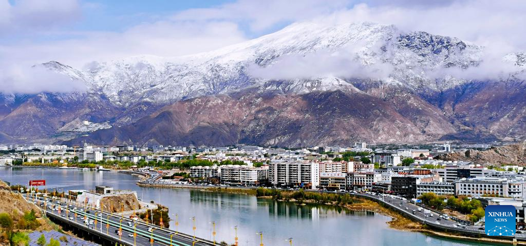 This photo taken with a mobile phone on May 11, 2023 shows the city view seen from the Nanshan Park in Lhasa, capital of southwest China's Tibet Autonomous Region. (Xinhua/Shen Hongbing)