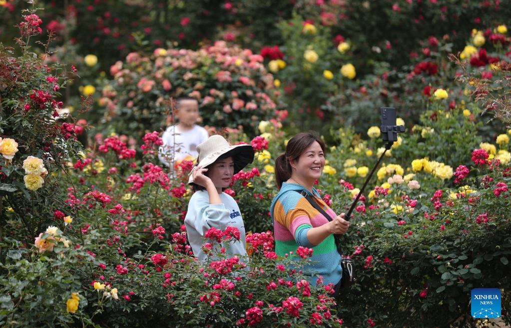 Tourists enjoy flowers at a flower base in Dongmen Village, Jiuzhou Township, Huangping County of Qiandongnan Miao and Dong Autonomous Prefecture, southwest China's Guizhou Province, May 13, 2023. With flowers blooming in the early summer, the flower industry in China witnesses robust growth. (Photo by Yuan Fuhong/Xinhua)
