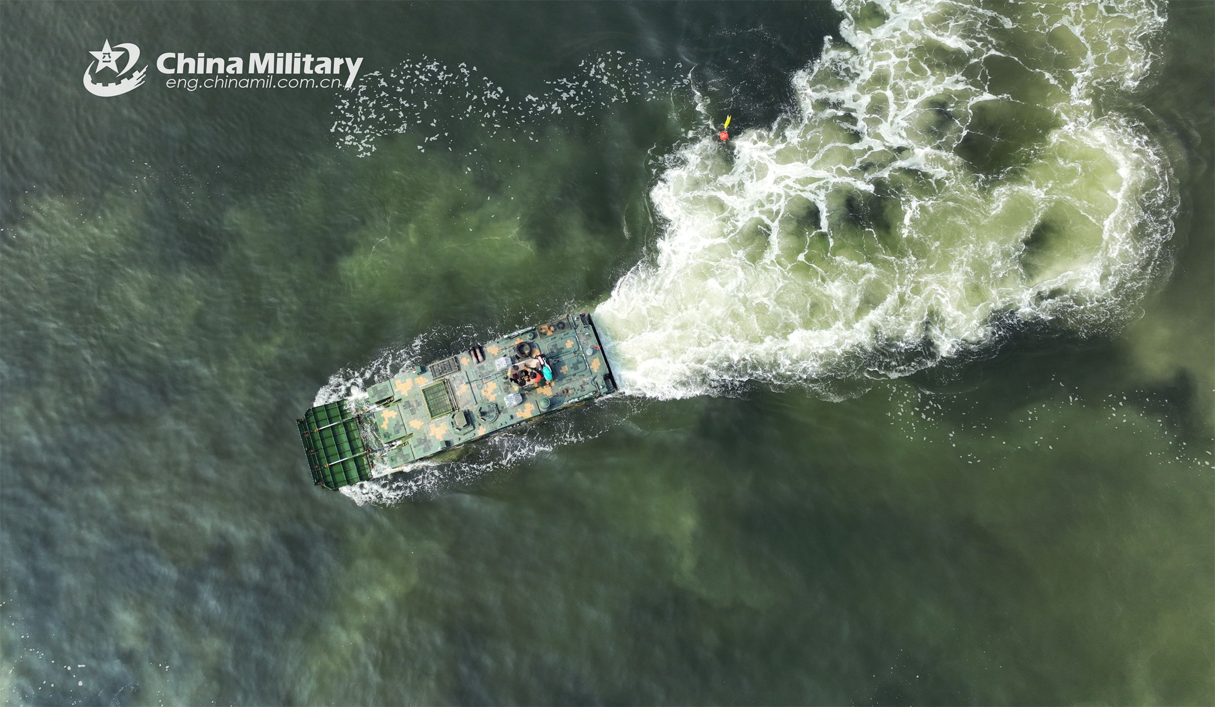 An amphibious armored vehicle attached to a brigade of the PLA 73rd Group Army makes its way during a maritime driving training exercise in late April, 2023. (eng.chinamil.com.cn/Photo by Zheng Yi)