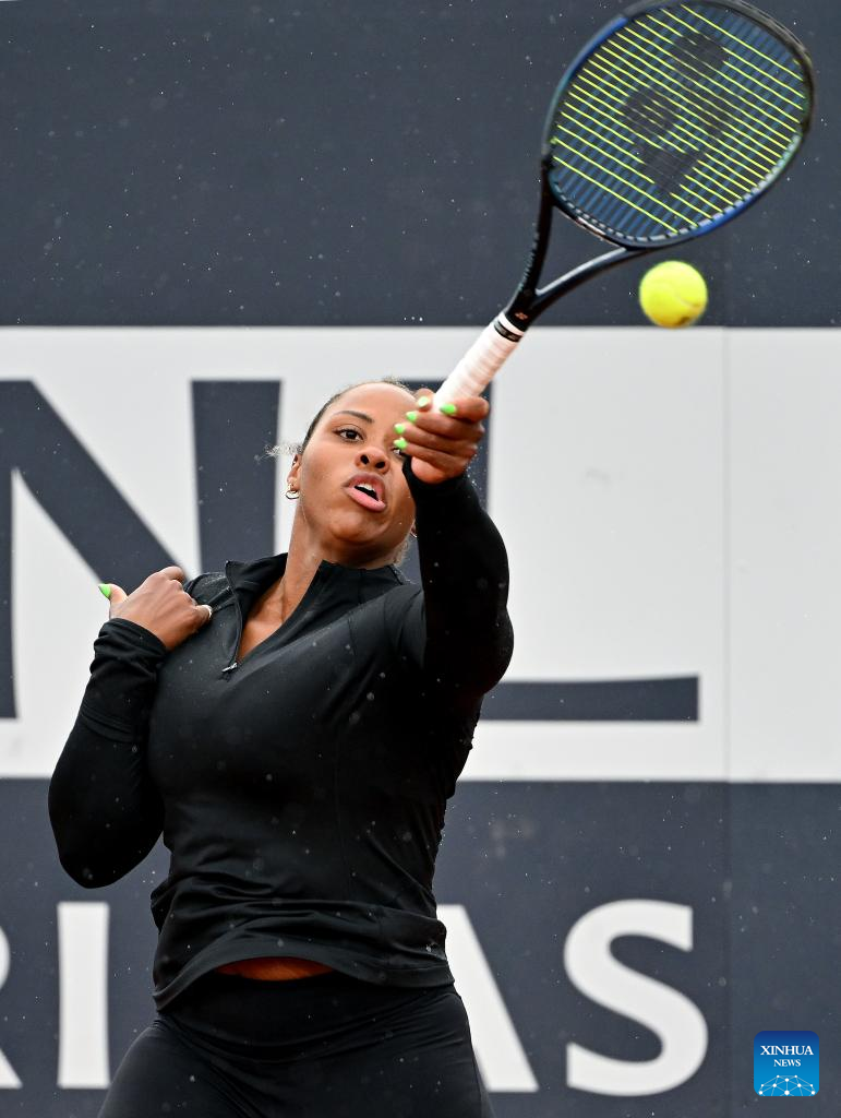 Taylor Townsend of the United States hits a return during the round of 32 match between Wang Xiyu of China and Taylor Townsend of the United States at the WTA Italian Open in Rome, Italy, May 13, 2023. (Photo by Alberto Lingria/Xinhua)