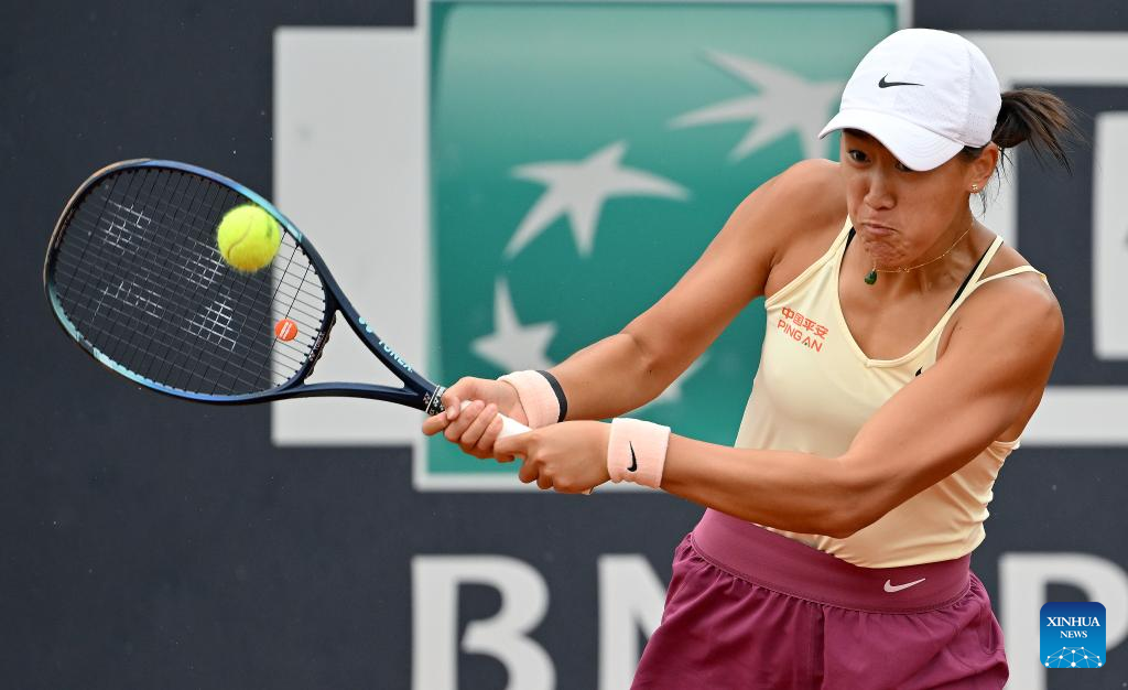 ROME, May 13 (Xinhua) -- An all-Chinese match has been set at the Italian Open after Wang Xiyu saved a match point to defeat American Taylor Townsend 6-2, 0-6, 7-5 and Zheng Qinwen beat Anna Bondar of Hungary 7-6(2), 6-4 to advance into the round of 16 here on Saturday.