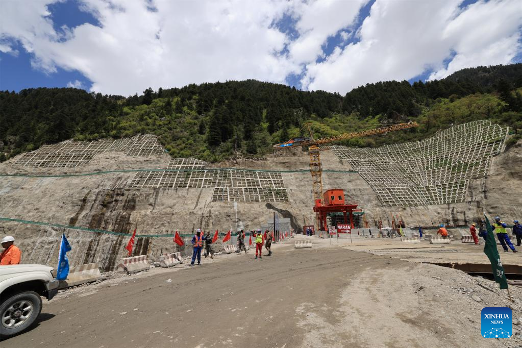 People work on the construction site of Suki Kinari Hydropower project under the China-Pakistan Economic Corridor (CPEC) in Mansehra district, Khyber Pakhtunkhwa province, Pakistan, on May 15, 2023. (CGGC/Handout via Xinhua)