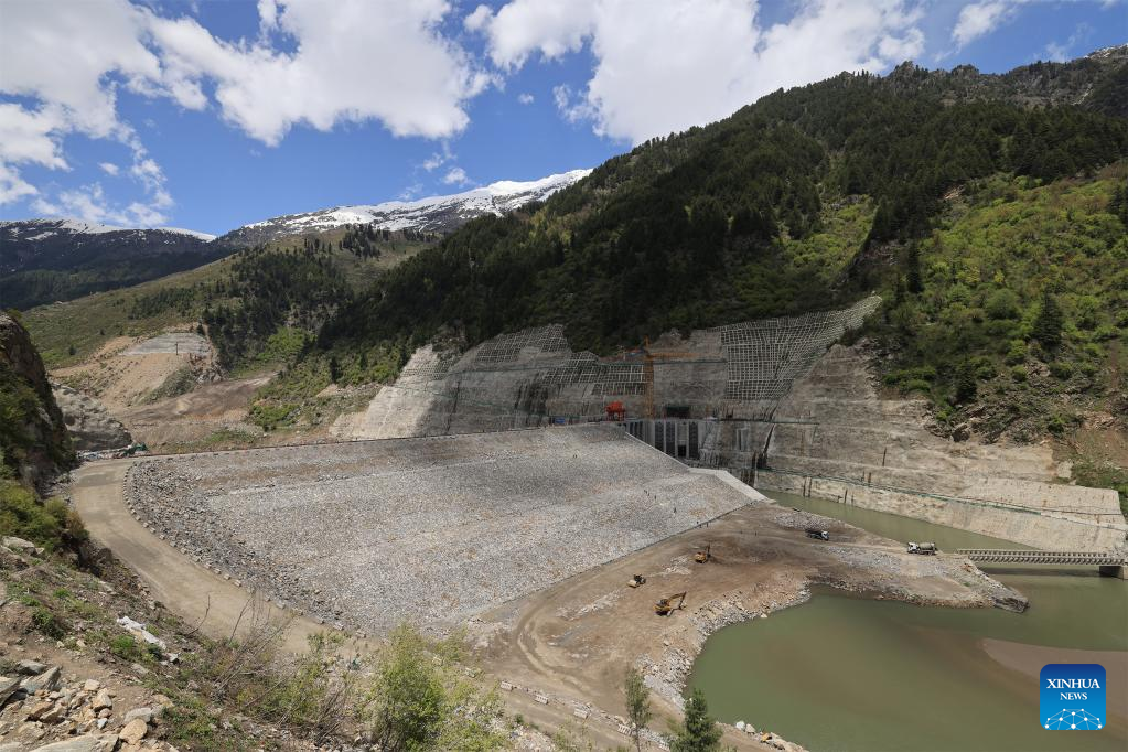 Photo taken on May 15, 2023 shows the dam of Suki Kinari Hydropower project under the China-Pakistan Economic Corridor (CPEC) in Mansehra district, Khyber Pakhtunkhwa province, Pakistan. (CGGC/Handout via Xinhua)