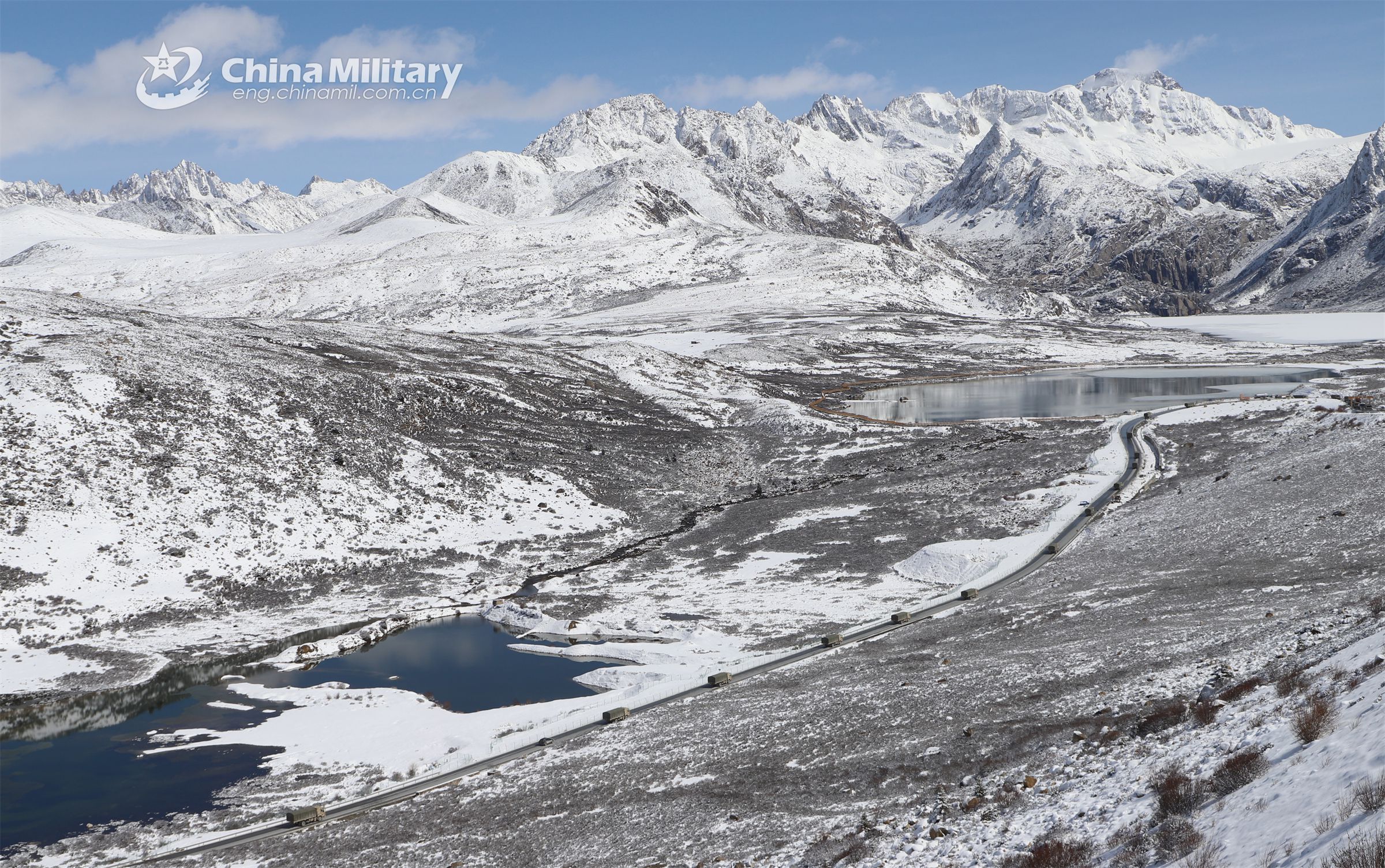Military trucks attached to a transport regiment under the PLA Xizang Military Command zigzag on the mountainous road during a recent long-distance maneuver operation in plateau area. (eng.chinamil.com.cn/Photo by Guo Hong)