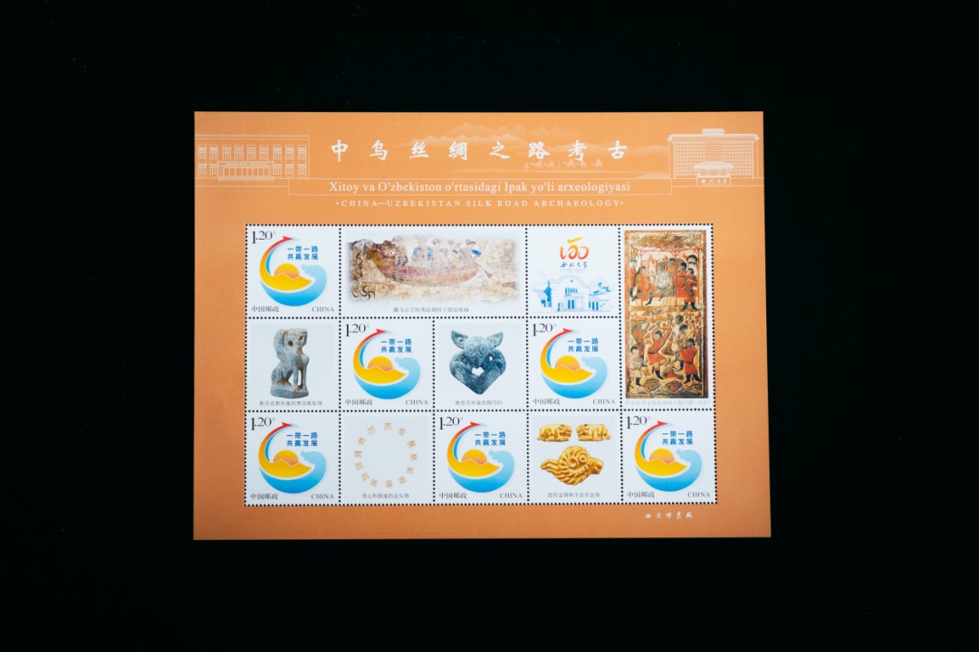Photo shows a stamp themed on the achievements of China-Uzbekistan joint archaeology. (Photo from Northwest University in China)