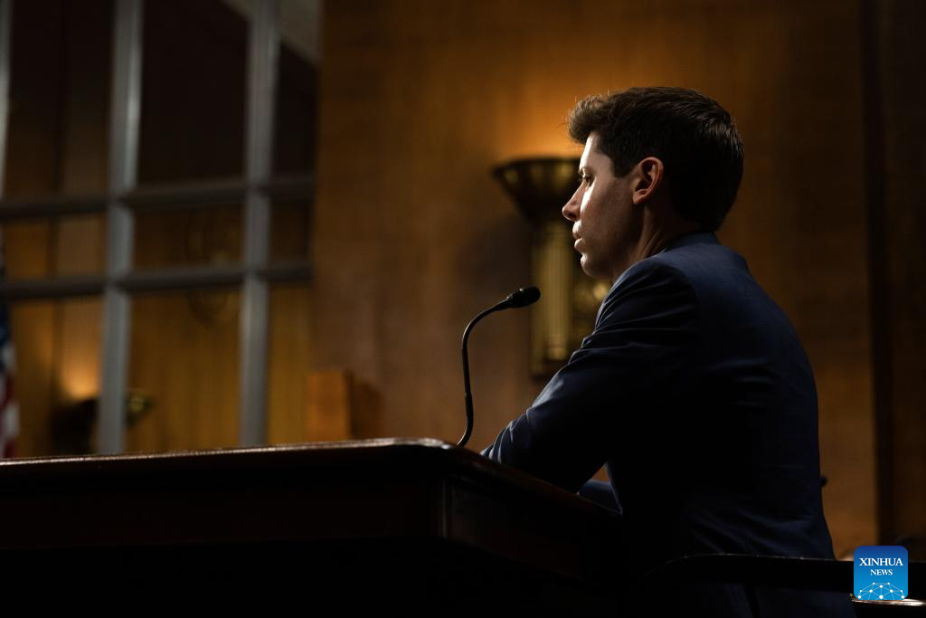 CEO of OpenAI Samuel Altman testifies at a hearing of the Senate Committee on the Judiciary on Oversight of A.I.: Rules for Artificial Intelligence in Washington, D.C., the United States, on May 16, 2023. (Photo by Aaron Schwartz/Xinhua)