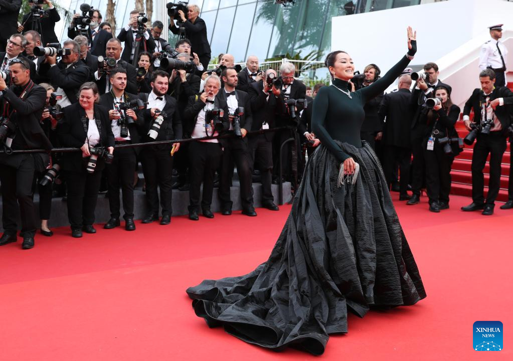 Actress Gong Li arrives for the opening ceremony of the 76th edition of the Cannes Film Festival in Cannes, southern France, on May 16, 2023. The 76th edition of the Cannes Film Festival kicked off on Tuesday evening, with 21 films selected to compete for the Palme d'Or top prize. (Xinhua/Gao Jing)