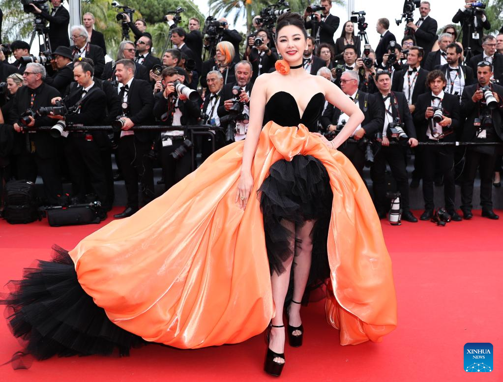 Actress Zhang Yuqi arrives for the opening ceremony of the 76th edition of the Cannes Film Festival in Cannes, southern France, on May 16, 2023. The 76th edition of the Cannes Film Festival kicked off on Tuesday evening, with 21 films selected to compete for the Palme d'Or top prize. (Xinhua/Gao Jing)